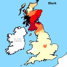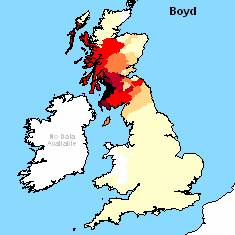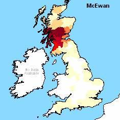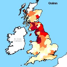 e.g. Irish and German surnames can be detected by low surname frequency and a “spotty”