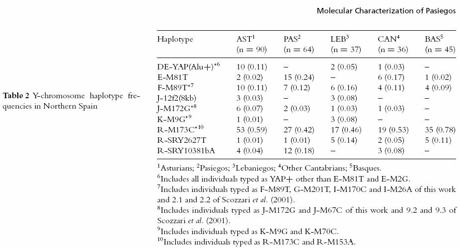 F. Y chromosome and mitochondrial DNA characterization of Pasiegos,